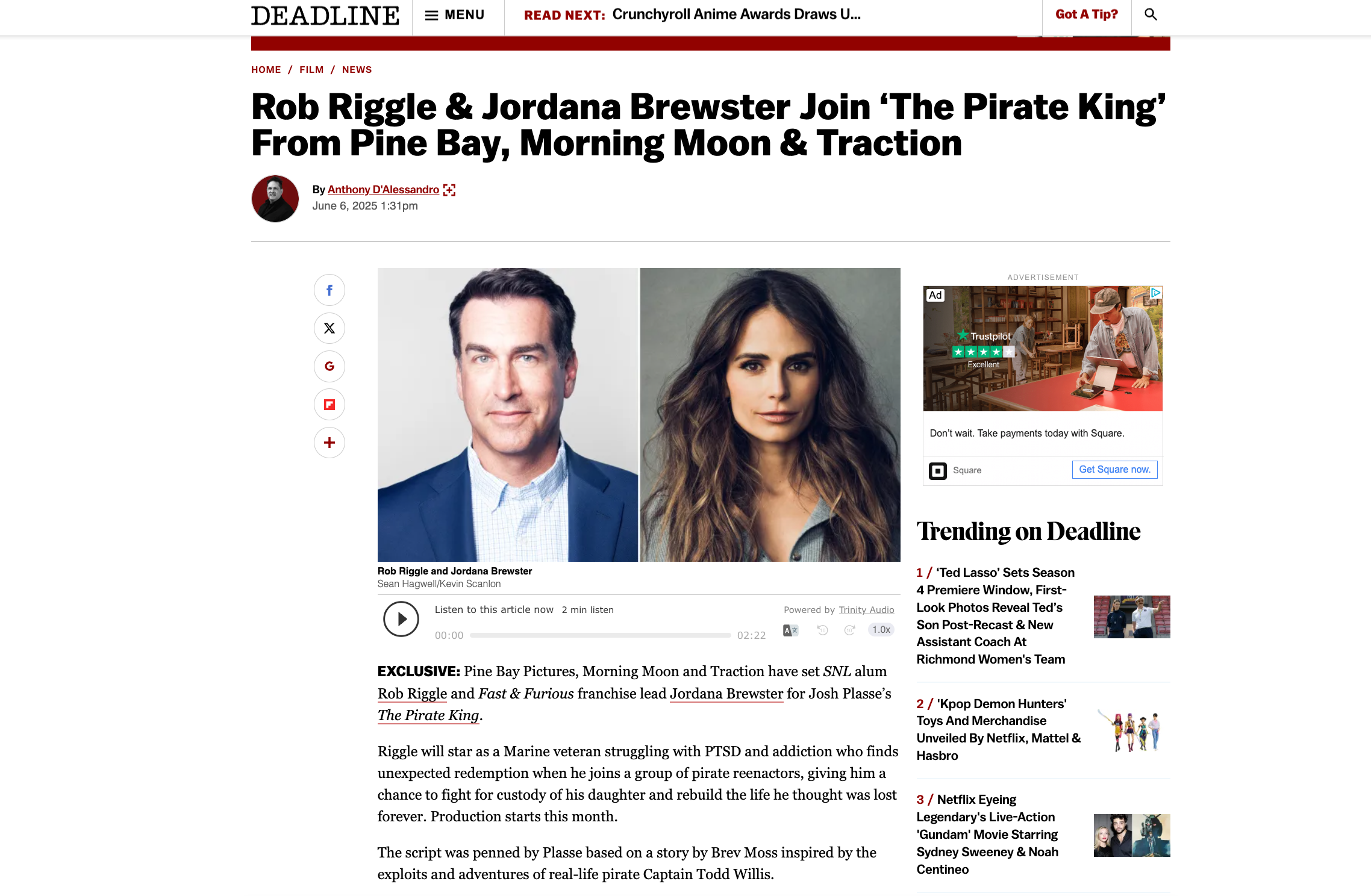The film follows a veteran (Riggle) struggling with addiction and PTSD, who finds a new purpose and fights for custody of his daughter by joining a group of pirate reenactors.
